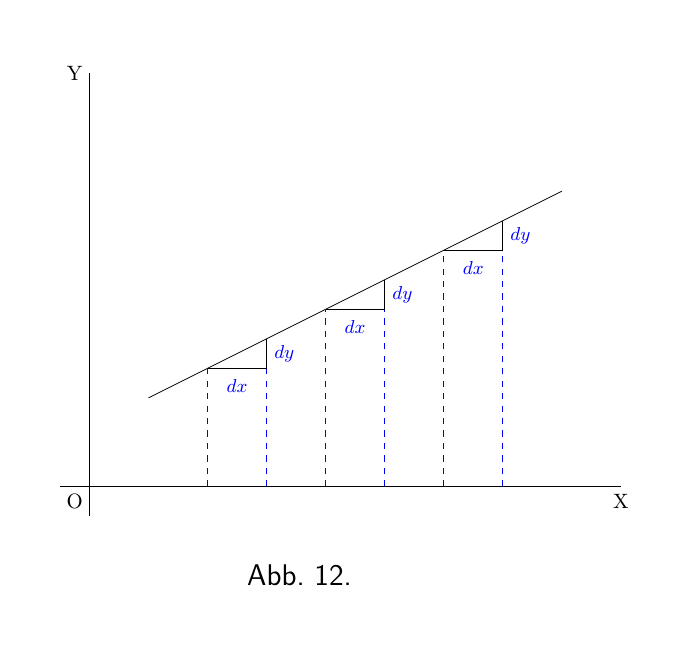 Wenn es sich bei der Kurve um eine gerade Linie handelt, wie in Abbildung 12, dann ist der Wert von $\dfrac{dy}{dx}$ in allen Punkten (auf dieser Linie) gleich. Mit anderen Worten die Steigung ist konstant.